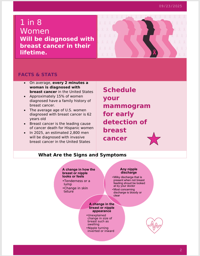 Breast Self-Awareness becoming familiar with the normal look and feel of your breasts and promptly reporting any changes, such as lumps, swelling, or skin changes, to your healthcare provider.